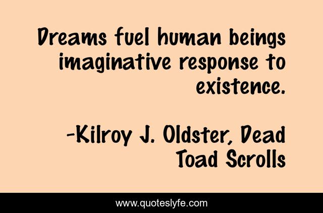 "Kilroy J. Oldster, Dead Toad Scrolls Quotes." Quoteslyfe.com, 2025. Mon. 08 Dec. 2025. <https://www.quoteslyfe.com/quote/Dreams-fuel-human-beings-imaginative-response-to-53763>.