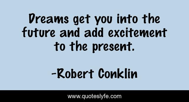 This page presents the quote "Dreams get you into the future and add excitement to the present.". Author of this quote is Robert Conklin. This quote is about future, present,.