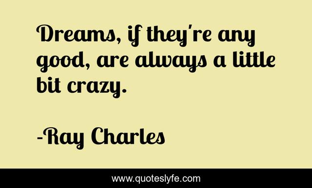 This page presents the quote "Dreams, if they're any good, are always a little bit crazy.". Author of this quote is Ray Charles. This quote is about dreams, dreaming,.