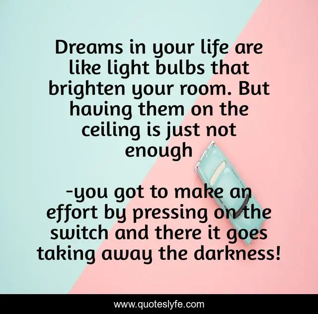 "you got to make an effort by pressing on the switch and there it goes taking away the darkness! Quotes." Quoteslyfe.com, 2025. Mon. 08 Dec. 2025. <https://www.quoteslyfe.com/quote/Dreams-in-your-life-are-like-light-129828>.