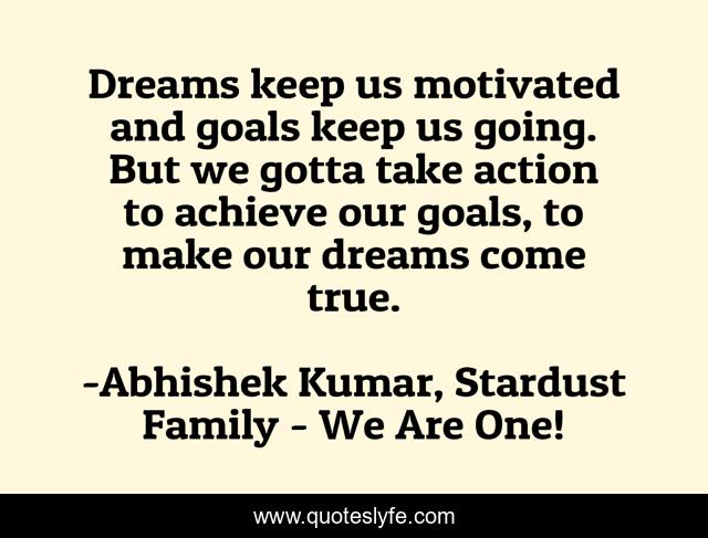 "Abhishek Kumar, Stardust Family - We Are One! Quotes." Quoteslyfe.com, 2025. Mon. 08 Dec. 2025. <https://www.quoteslyfe.com/quote/Dreams-keep-us-motivated-and-goals-keep-47266>.