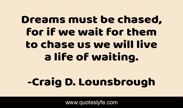 This page presents the quote "Dreams must be chased, for if we wait for them to chase us we will live a life of waiting.". Author of this quote is Craig D. Lounsbrough. This quote is about mission, fail, chase, living, objectives, chased, waiting, opportunities, live,.