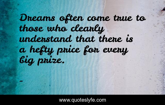 This page presents the quote "Dreams often come true to those who clearly understand that there is a hefty price for every big prize.". Author of this quote is . This quote is about success, edmond-mbiaka, dreaming, manifestation, dreams-comes-true, paying-a-hefty-price, dream, dreams,.