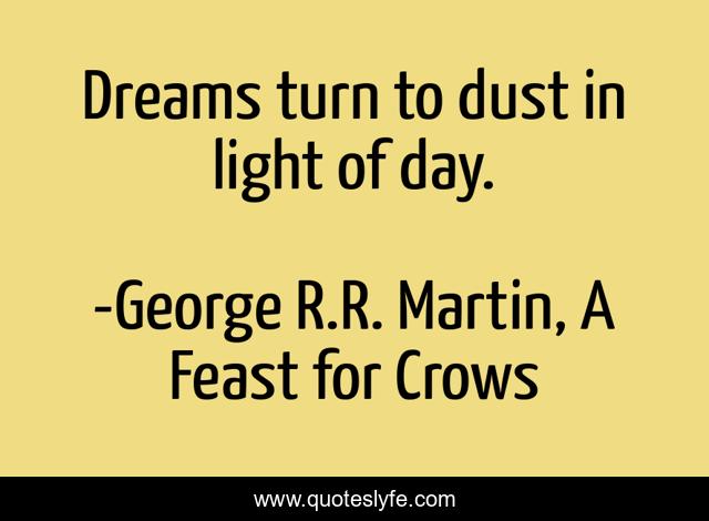 "George R.R. Martin, A Feast for Crows Quotes." Quoteslyfe.com, 2025. Sun. 07 Dec. 2025. <https://www.quoteslyfe.com/quote/Dreams-turn-to-dust-in-light-of-53924>.