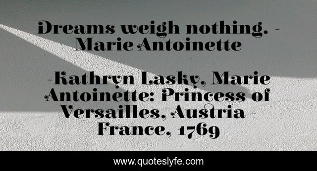 "Kathryn Lasky, Marie Antoinette: Princess of Versailles, Austria - France, 1769 Quotes." Quoteslyfe.com, 2025. Tue. 09 Dec. 2025. <https://www.quoteslyfe.com/quote/Dreams-weigh-nothing-Marie-Antoinette-53250>.