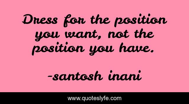 This page presents the quote "Dress for the position you want, not the position you have.". Author of this quote is santosh inani. This quote is about living, life, good, success, etc, future, position, dress, thoughts,.