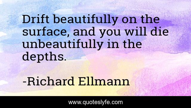This page presents the quote "Drift beautifully on the surface, and you will die unbeautifully in the depths.". Author of this quote is Richard Ellmann. This quote is about depths, water, life, death, beauty,.