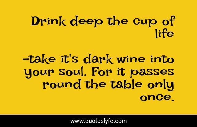 "take it's dark wine into your soul. For it passes round the table only once. Quotes." Quoteslyfe.com, 2025. Mon. 08 Dec. 2025. <https://www.quoteslyfe.com/quote/Drink-deep-the-cup-of-life-125571>.