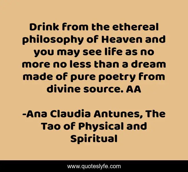 "Ana Claudia Antunes, The Tao of Physical and Spiritual Quotes." Quoteslyfe.com, 2025. Sun. 07 Dec. 2025. <https://www.quoteslyfe.com/quote/Drink-from-the-ethereal-philosophy-of-Heaven-181842>.