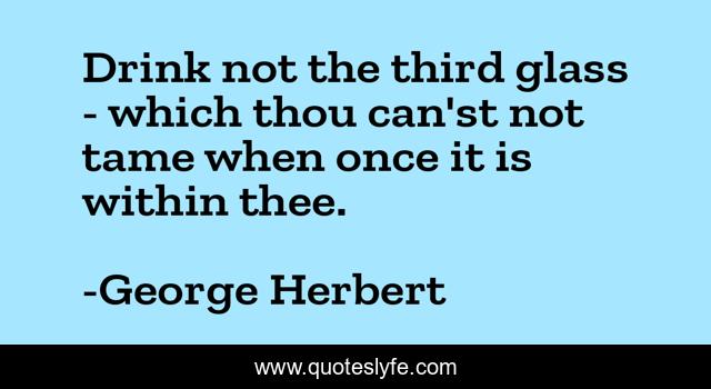 This page presents the quote "Drink not the third glass - which thou can'st not tame when once it is within thee.". Author of this quote is George Herbert. This quote is about , drinking, drink, drinkers,.