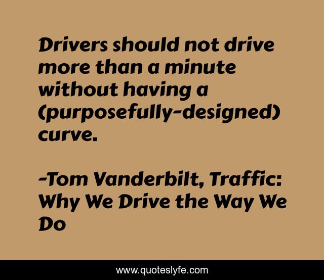 This page presents the quote "Drivers should not drive more than a minute without having a (purposefully-designed) curve.". Author of this quote is Tom Vanderbilt, Traffic: Why We Drive the Way We Do. This quote is about character, discipleship, assumptions, boredom, attention,.
