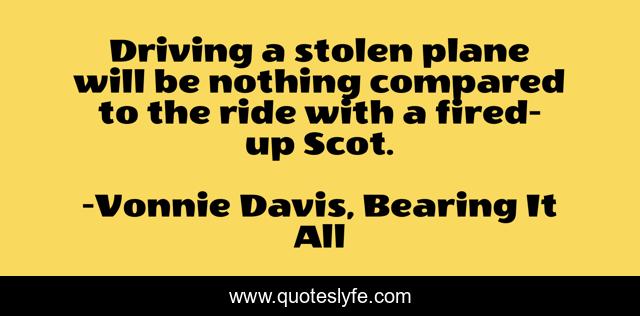 This page presents the quote "Driving a stolen plane will be nothing compared to the ride with a fired-up Scot.". Author of this quote is Vonnie Davis, Bearing It All. This quote is about bears, comedy-romance, paranormal-romance, shifter-romance,.