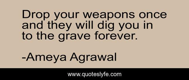 This page presents the quote "Drop your weapons once and they will dig you in to the grave forever.". Author of this quote is Ameya Agrawal. This quote is about life, bravery,.