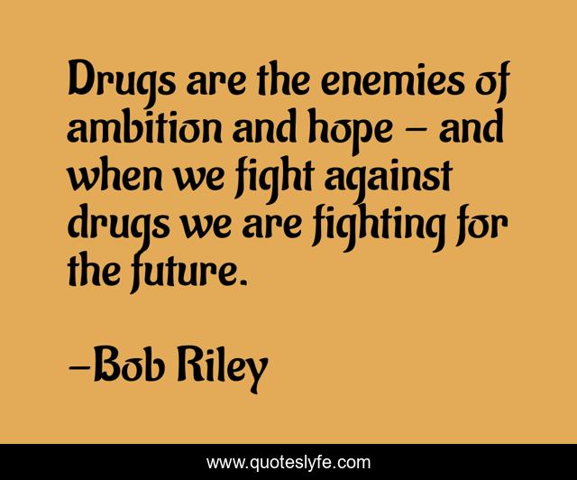 This page presents the quote "Drugs are the enemies of ambition and hope - and when we fight against drugs we are fighting for the future.". Author of this quote is Bob Riley. This quote is about ambition, future, fight,.