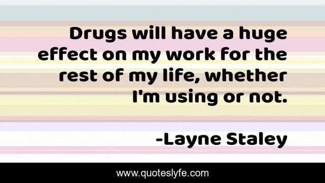 This page presents the quote "Drugs will have a huge effect on my work for the rest of my life, whether I'm using or not.". Author of this quote is Layne Staley. This quote is about drug-addiction, alice-in-chains, addicts, drugs, layne-staley, user, using,.