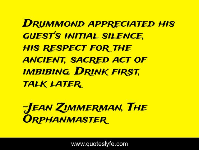 "Jean Zimmerman, The Orphanmaster Quotes." Quoteslyfe.com, 2025. Mon. 08 Dec. 2025. <https://www.quoteslyfe.com/quote/Drummond-appreciated-his-guest-s-initial-silence-247088>.