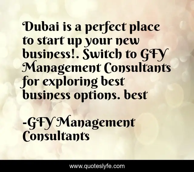 This page presents the quote "Dubai is a perfect place to start up your new business!. Switch to GFY Management Consultants for exploring best business options. best". Author of this quote is GFY Management Consultants. This quote is about business-setup, business, llc-business,.