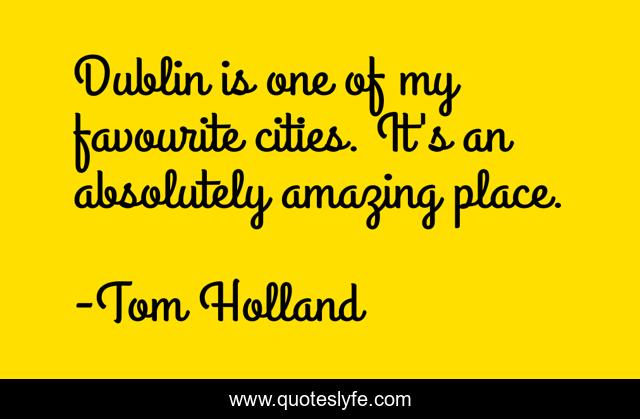 This page presents the quote "Dublin is one of my favourite cities. It's an absolutely amazing place.". Author of this quote is Tom Holland. This quote is about favourite, place, dublin,.