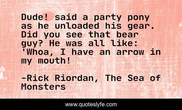 "Rick Riordan, The Sea of Monsters Quotes." Quoteslyfe.com, 2025. Sat. 06 Dec. 2025. <https://www.quoteslyfe.com/quote/Dude-said-a-party-pony-as-he-244641>.