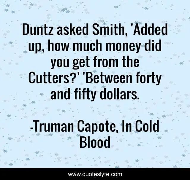 "Truman Capote, In Cold Blood Quotes." Quoteslyfe.com, 2025. Sun. 07 Dec. 2025. <https://www.quoteslyfe.com/quote/Duntz-asked-Smith-Added-up-how-much-208786>.