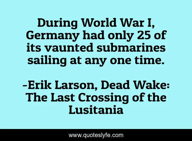 "Erik Larson, Dead Wake: The Last Crossing of the Lusitania Quotes." Quoteslyfe.com, 2025. Fri. 05 Dec. 2025. <https://www.quoteslyfe.com/quote/During-World-War-I-Germany-had-only-196350>.
