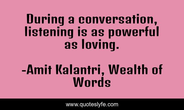 "Amit Kalantri, Wealth of Words Quotes." Quoteslyfe.com, 2025. Fri. 05 Dec. 2025. <https://www.quoteslyfe.com/quote/During-a-conversation-listening-is-as-powerful-22859>.