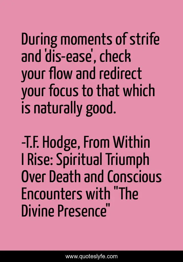 "T.F. Hodge, From Within I Rise: Spiritual Triumph Over Death and Conscious Encounters with "The Divine Presence" Quotes." Quoteslyfe.com, 2025. Sat. 06 Dec. 2025. <https://www.quoteslyfe.com/quote/During-moments-of-strife-and-dis-ease-22210>.