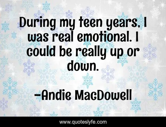 This page presents the quote "During my teen years, I was real emotional. I could be really up or down.". Author of this quote is Andie MacDowell. This quote is about down, real, emotional,.