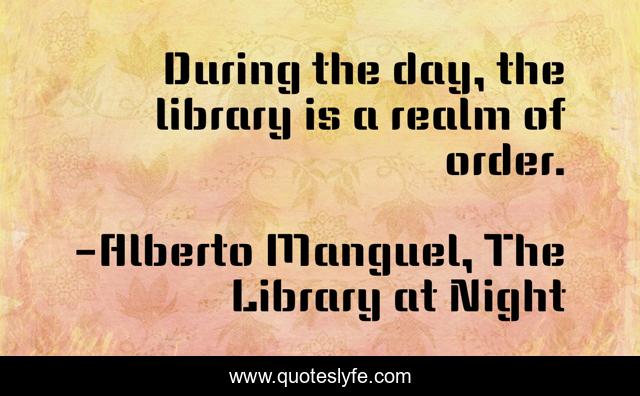 This page presents the quote "During the day, the library is a realm of order.". Author of this quote is Alberto Manguel, The Library at Night. This quote is about order, library,.