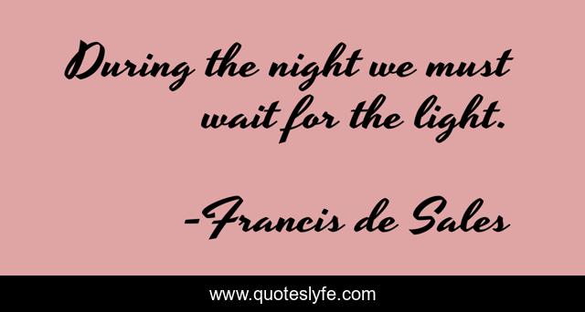 "Francis de Sales Quotes." Quoteslyfe.com, 2025. Fri. 05 Dec. 2025. <https://www.quoteslyfe.com/quote/During-the-night-we-must-wait-for-193183>.