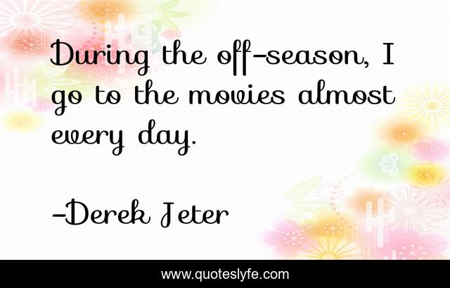 This page presents the quote "During the off-season, I go to the movies almost every day.". Author of this quote is Derek Jeter. This quote is about almost, every day, day,.