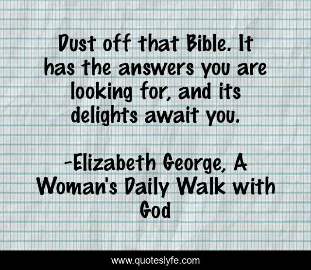"Elizabeth George, A Woman's Daily Walk with God Quotes." Quoteslyfe.com, 2025. Sun. 07 Dec. 2025. <https://www.quoteslyfe.com/quote/Dust-off-that-Bible-It-has-the-169530>.