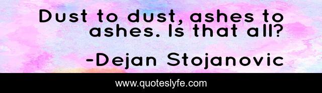 This page presents the quote "Dust to dust, ashes to ashes. Is that all?". Author of this quote is Dejan Stojanovic. This quote is about all, literature, ashes, dejan-stojanovic, poetry, wisdom, quotes, dust, thoughts,.