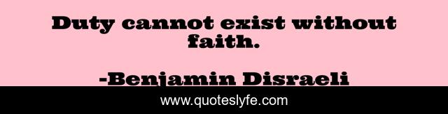 This page presents the quote "Duty cannot exist without faith.". Author of this quote is Benjamin Disraeli. This quote is about duty, without, exist,.