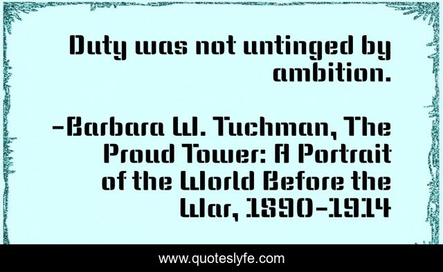 "Barbara W. Tuchman, The Proud Tower: A Portrait of the World Before the War, 1890-1914 Quotes." Quoteslyfe.com, 2025. Fri. 05 Dec. 2025. <https://www.quoteslyfe.com/quote/Duty-was-not-untinged-by-ambition-64773>.