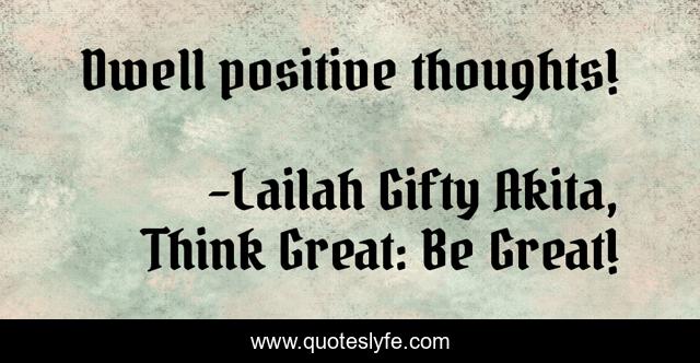 "Lailah Gifty Akita, Think Great: Be Great! Quotes." Quoteslyfe.com, 2025. Mon. 08 Dec. 2025. <https://www.quoteslyfe.com/quote/Dwell-positive-thoughts-140483>.