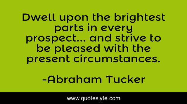This page presents the quote "Dwell upon the brightest parts in every prospect... and strive to be pleased with the present circumstances.". Author of this quote is Abraham Tucker. .