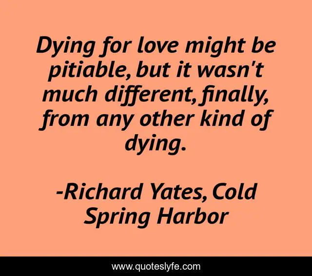 "Richard Yates, Cold Spring Harbor Quotes." Quoteslyfe.com, 2025. Mon. 08 Dec. 2025. <https://www.quoteslyfe.com/quote/Dying-for-love-might-be-pitiable-but-21368>.
