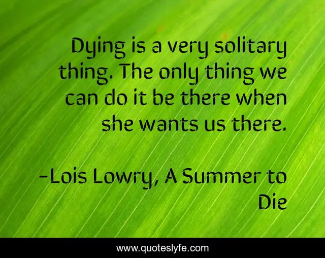 "Lois Lowry, A Summer to Die Quotes." Quoteslyfe.com, 2025. Mon. 08 Dec. 2025. <https://www.quoteslyfe.com/quote/Dying-is-a-very-solitary-thing-The-123644>.