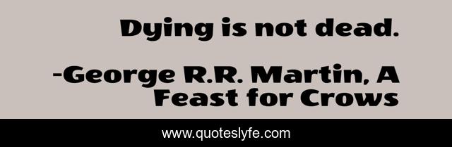This page presents the quote "Dying is not dead.". Author of this quote is George R.R. Martin, A Feast for Crows. .