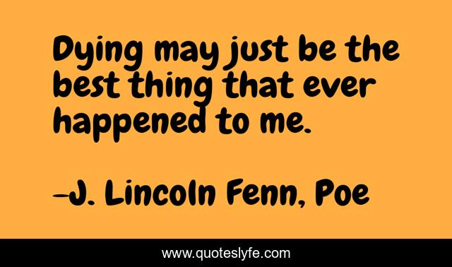 This page presents the quote "Dying may just be the best thing that ever happened to me.". Author of this quote is J. Lincoln Fenn, Poe. This quote is about death-and-dying, dying,.