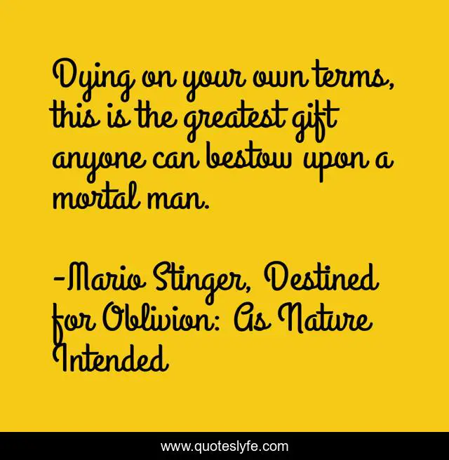 "Mario Stinger, Destined for Oblivion: As Nature Intended Quotes." Quoteslyfe.com, 2025. Fri. 05 Dec. 2025. <https://www.quoteslyfe.com/quote/Dying-on-your-own-terms-this-is-220281>.
