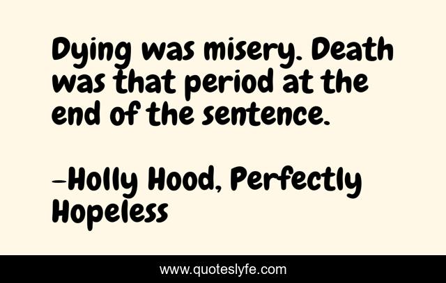 "Holly Hood, Perfectly Hopeless Quotes." Quoteslyfe.com, 2025. Mon. 08 Dec. 2025. <https://www.quoteslyfe.com/quote/Dying-was-misery-Death-was-that-period-220081>.