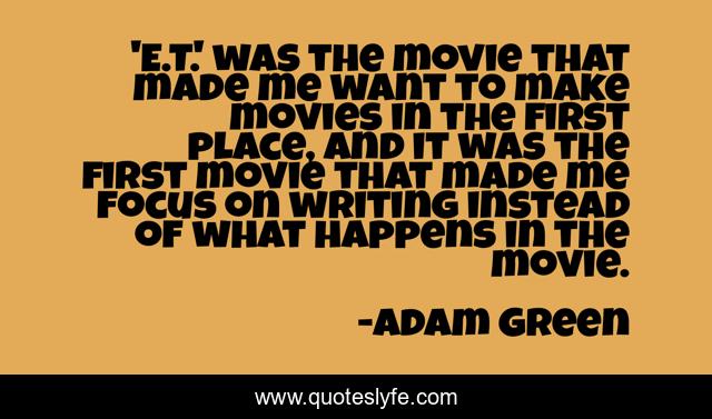 This page presents the quote "'E.T.' was the movie that made me want to make movies in the first place, and it was the first movie that made me focus on writing instead of what happens in the movie.". Author of this quote is Adam Green. This quote is about me, focus, writing,.