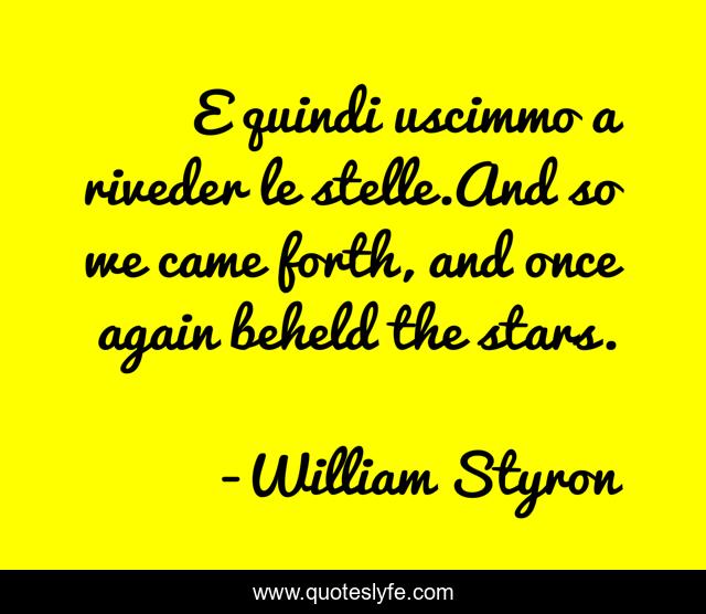 "William Styron Quotes." Quoteslyfe.com, 2025. Mon. 08 Dec. 2025. <https://www.quoteslyfe.com/quote/E-quindi-uscimmo-a-riveder-le-stelle-20376>.
