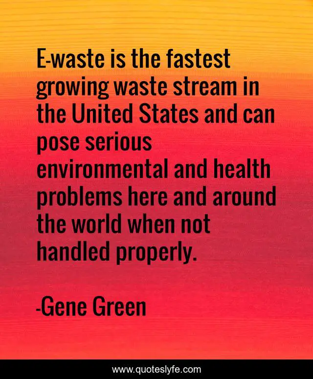 "Gene Green Quotes." Quoteslyfe.com, 2025. Sat. 06 Dec. 2025. <https://www.quoteslyfe.com/quote/E-waste-is-the-fastest-growing-waste-311588>.