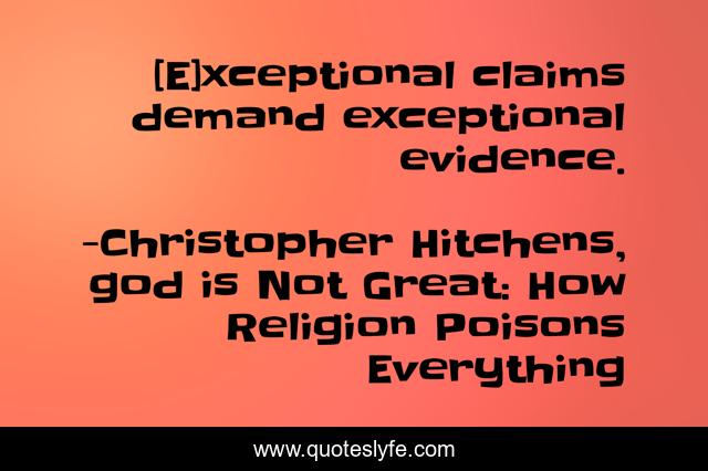 This page presents the quote "[E]xceptional claims demand exceptional evidence.". Author of this quote is Christopher Hitchens, god is Not Great: How Religion Poisons Everything. This quote is about god, noremorse, evidence, atheism, atheist, science,.