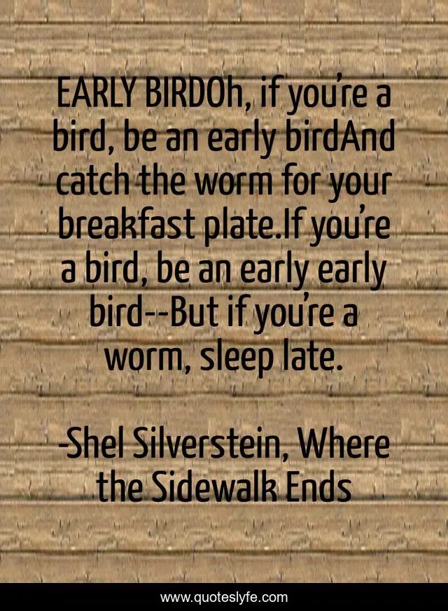 "Shel Silverstein, Where the Sidewalk Ends Quotes." Quoteslyfe.com, 2025. Fri. 05 Dec. 2025. <https://www.quoteslyfe.com/quote/EARLY-BIRDOh-if-you-re-a-bird-2374>.