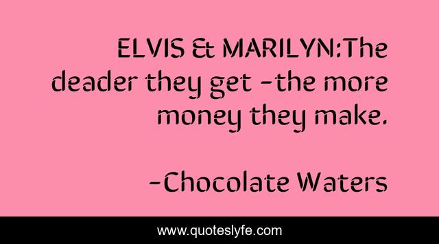 "Chocolate Waters Quotes." Quoteslyfe.com, 2025. Fri. 05 Dec. 2025. <https://www.quoteslyfe.com/quote/ELVIS-MARILYN-The-deader-they-get-the-149968>.