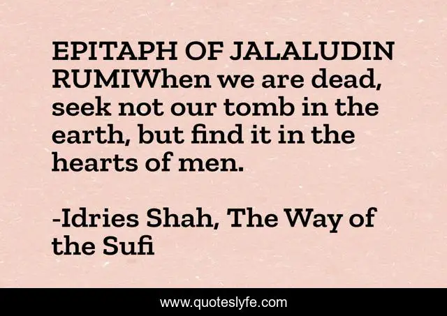 "Idries Shah, The Way of the Sufi Quotes." Quoteslyfe.com, 2025. Fri. 05 Dec. 2025. <https://www.quoteslyfe.com/quote/EPITAPH-OF-JALALUDIN-RUMIWhen-we-are-dead-203451>.
